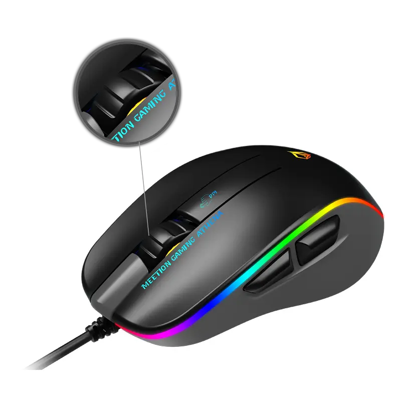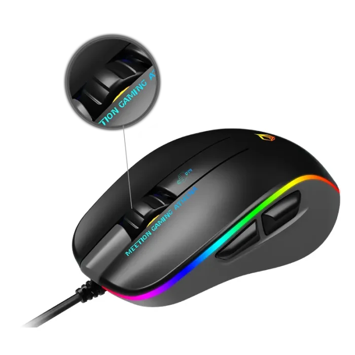 The Meetion GM23 is a high-performance wired gaming mouse designed to elevate your gameplay across FPS, MMORPG, MOBA, and RTS titles. With a precision 12,800 CPI optical sensor, polling rates up to 1,000 Hz, and a maximum tracking speed of 60 ips, it ensures smooth, accurate tracking and responsive performance for competitive gaming.