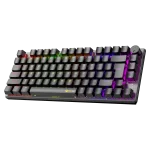 It features hot-swappable mechanical switches, meaning you can change out the switches without soldering — giving you flexibility to choose your preferred switch type or replace switches easily.