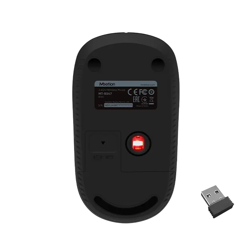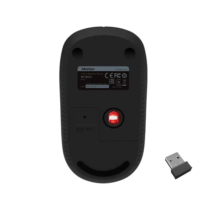 The Meetion R547 Wireless Optical Mouse combines practical functionality with sleek portability. With a lightweight build (~58 g) and dimensions of approximately 106 × 60 × 34 mm, it fits comfortably into a laptop bag or travel kit.